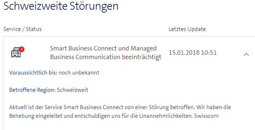 UPDATE: Die Störung des Swisscom-Telefonnetzes ist behoben und wir sind wieder wie gewohnt erreichbar. Wir freuen uns über Ihre Kontaktaufnahme 058 059 59 59. --------------------------------------------------------------------------------------------- Grüezi Aufgrund der Störung des Swisscom-Telefonnetzes ist auch unsere Erreichbarkeit stark eingeschränkt. Sie erreichen uns gerne via E-Mail services@axxeva.ch. Besten Dank für das Verständnis. Axxeva Services AG |